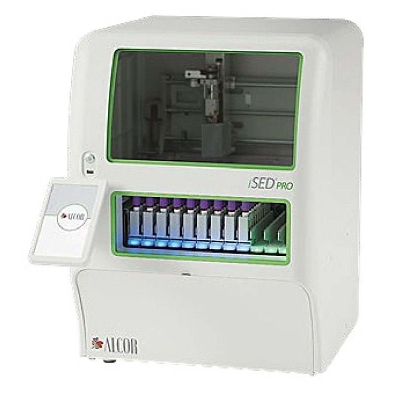 Аналізатор ШОЕ Alcor ISED®Pro найкраще підходить великим лабораторіям, які віддають перевагу повністю автоматизованому робочому процесу на основі стійок з пробірками.