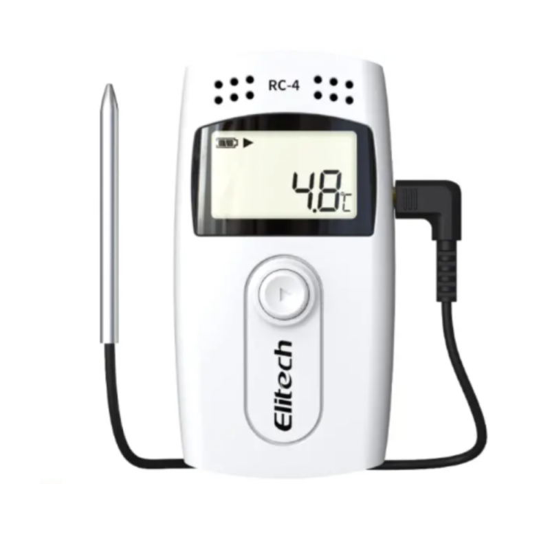 - Elitech RC-4 — це універсальний реєстратор даних (Data Logger), який став стандартом де-факто для фармацевтичного бізнесу, логістики та харчової промисловості. Головна особливість цієї моделі — наявність виносного датчика (щупа) довжиною 1.1 м.