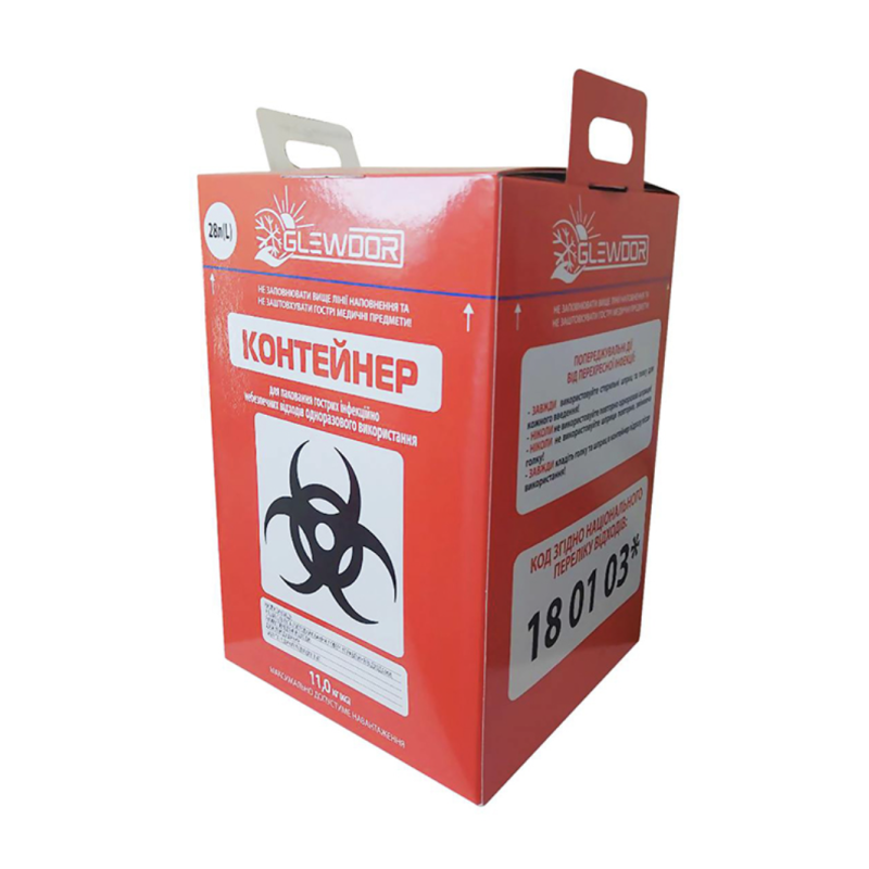 - Спеціалізований одноразовий контейнер об'ємом 28л призначений для безпечного збору, зберігання та подальшої утилізації інфекційно небезпечних відходів (клас B/C). Це незамінний елемент оснащення маніпуляційних кабінетів, лабораторій та операційних блоків.