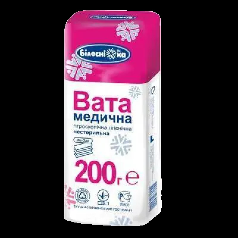 Вата медична гігієнічна нестерильна ТМ “Білосніжка”, зигзагоподібна стрічка**